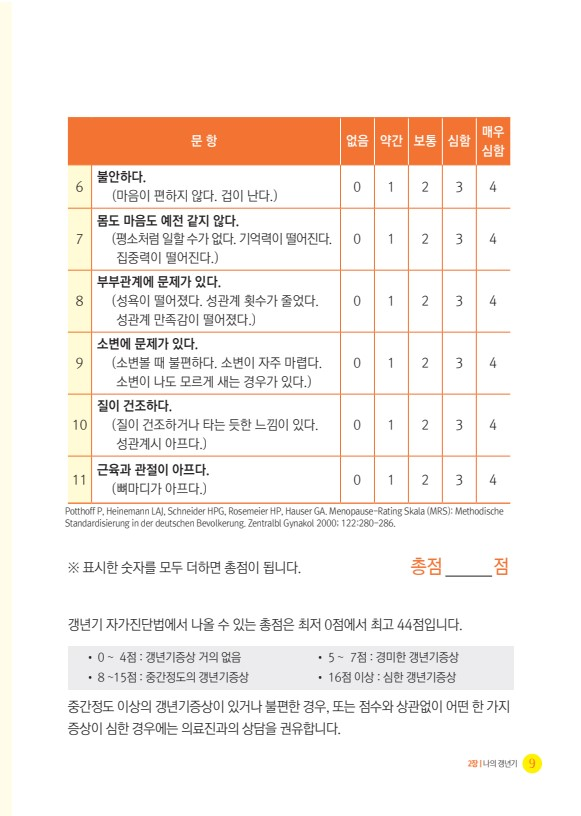 2. 심리적 증상 - 우울, 불안, 초조, 긴장, 짜증, 신경과민, 감정기복, 집중력 저하, 기억력 감퇴, 의욕상실, 자신감 상실